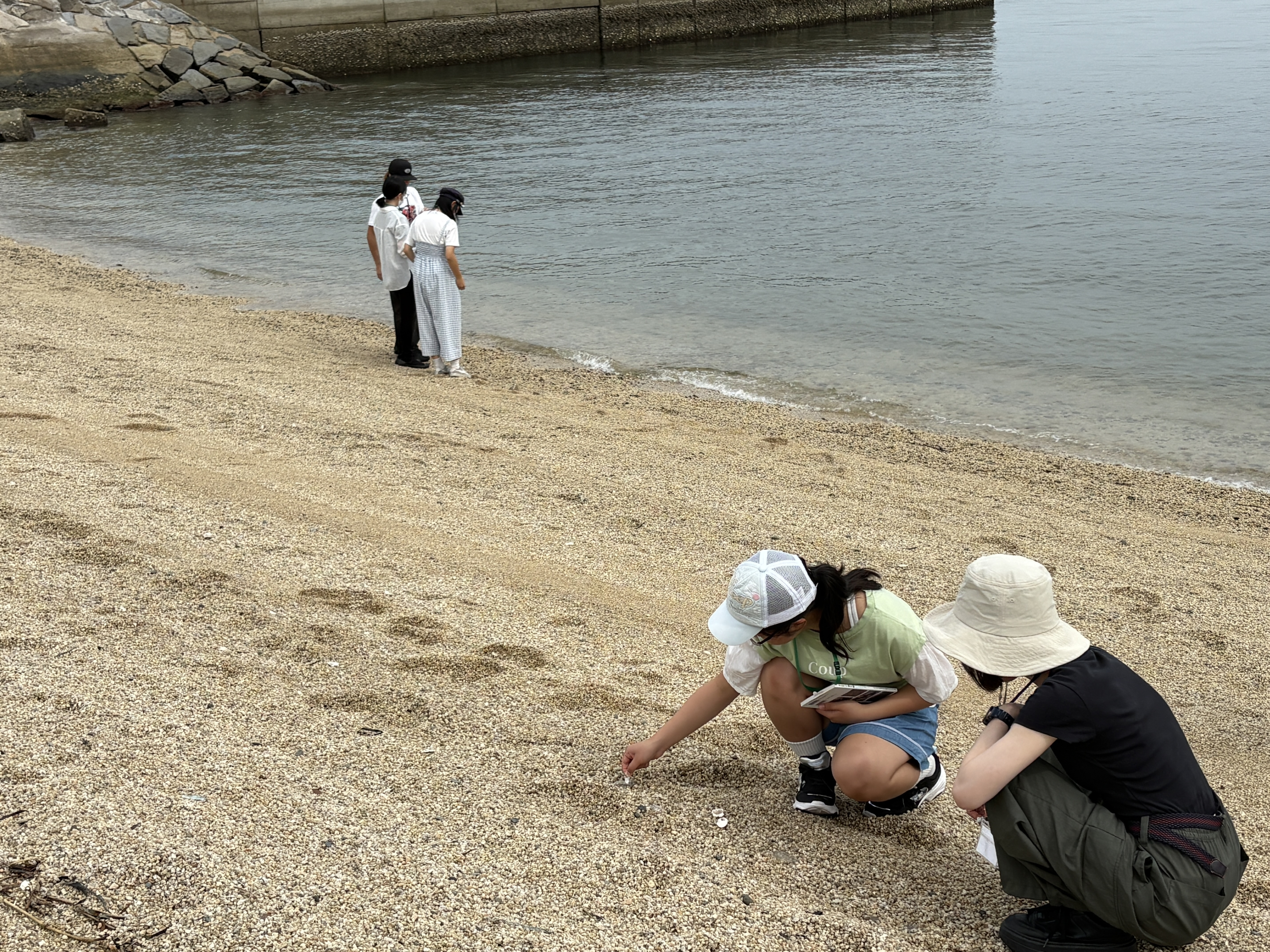 この日、香川大学芸術未来研究場せとうち(高松市庵治町)の1階では金属工芸の技術の一つ、鋳金のワークショップが行われました。まずはアーティストの柴田さんが小豆島で採取した貝殻を見せることから始まりました。「かわいい形を見つけたら名前を調べてみて」と声をかけ、参加者はガイドブックを片手に隣接する鎌野海水浴場の浜辺へ。二枚貝や凸凹の殻、さらには漂着ゴミ(錠剤やカプセルを一粒ずつ密封してある医薬品包装シート)など、思い思いに“宝物”を探しました。