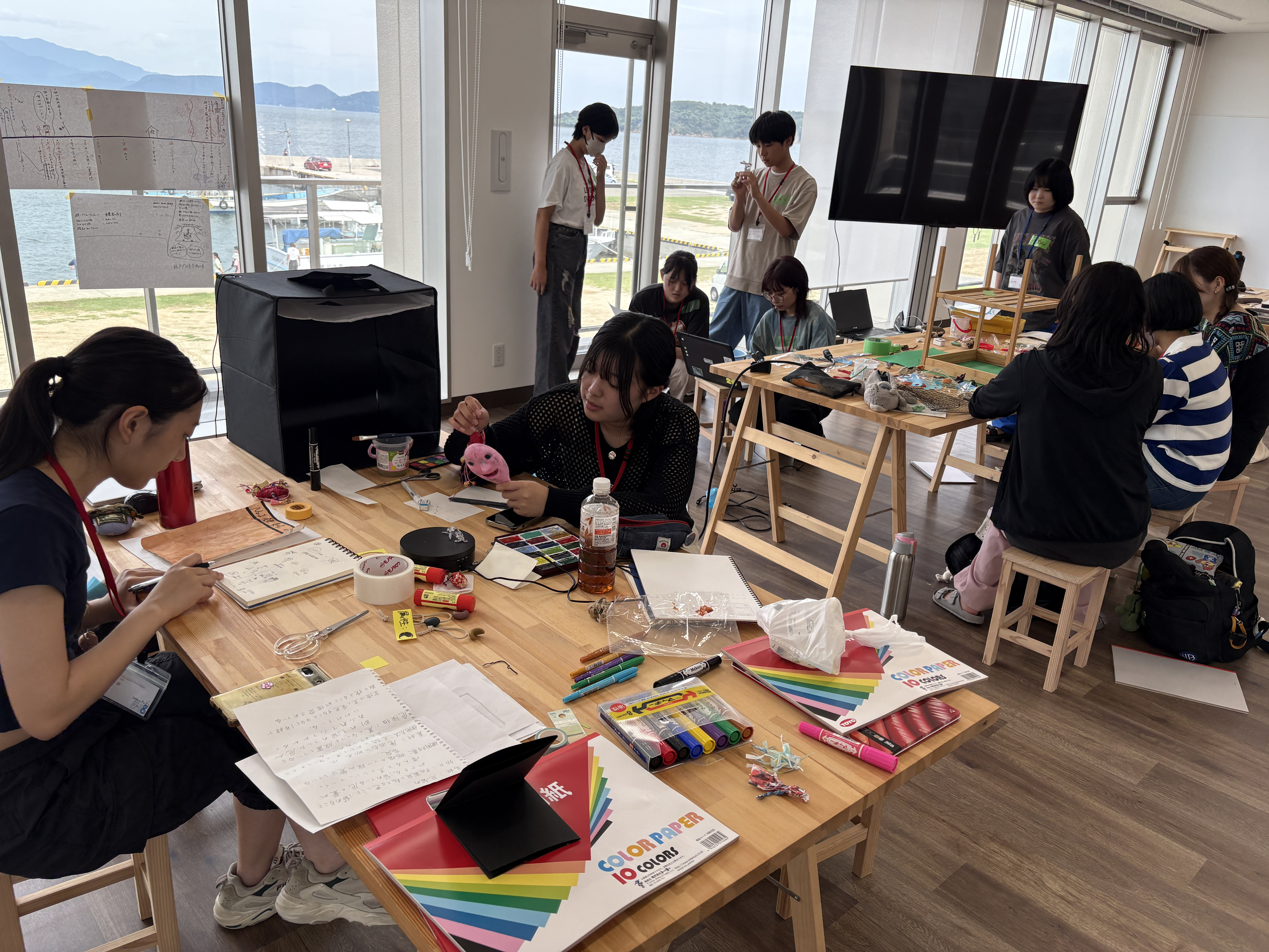 前回の活動で参加者らは瀬戸内海歴史民俗資料館を訪れ「昔の暮らしの道具が残っているなら、今の自分の生活も未来の歴史になる」と気づきました。菅野さんは「一見関係なさそうに見える海や地域のことを、どれだけ自分ごとにできるかを考えてほしい」と伝えます。遊び心あふれる制作を通して、参加者は海や地域と自分との関係を見つめ直していました。