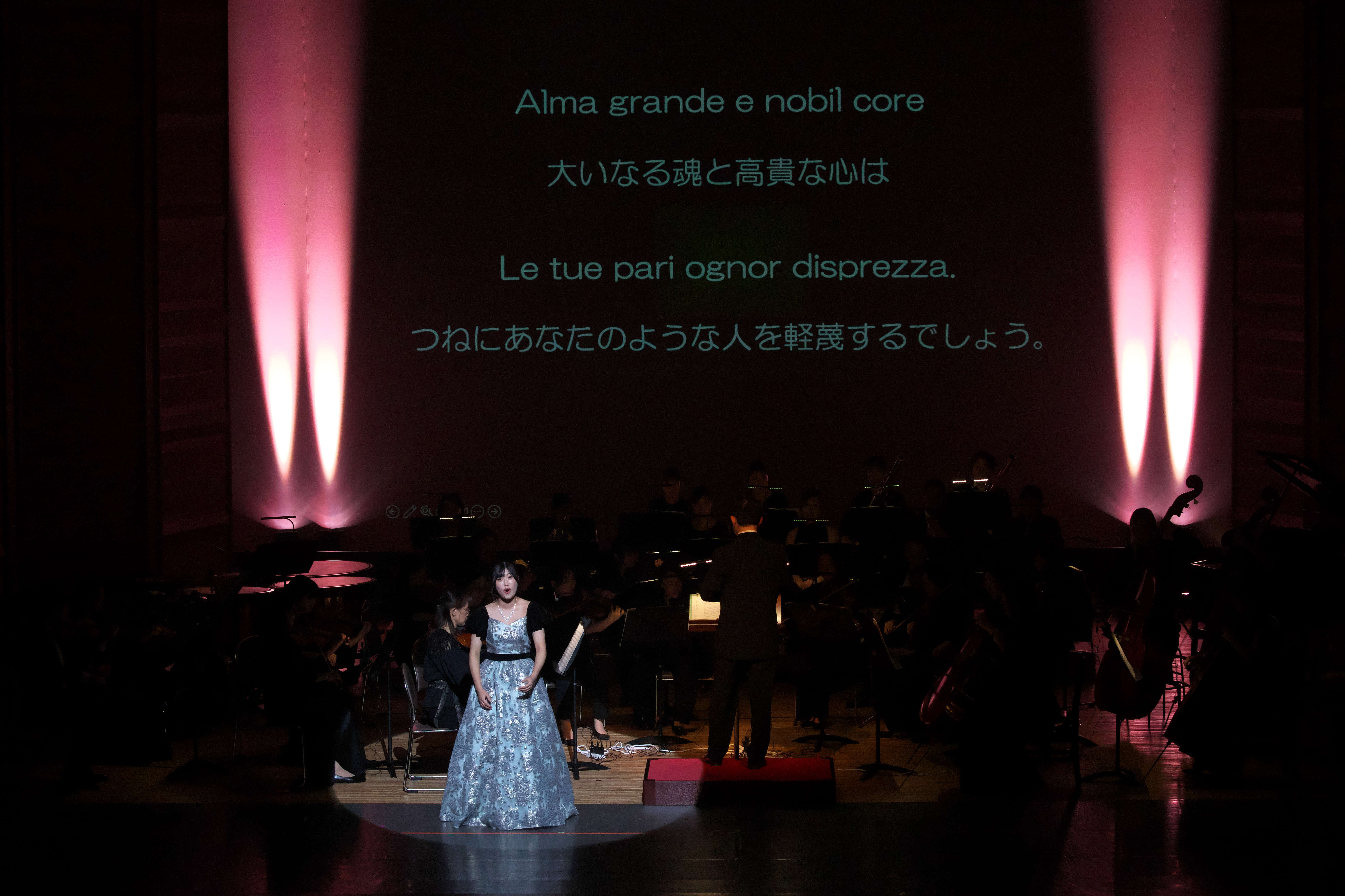 高松第一高等学校音楽科3年の青柳吏恩さん。オーケストラとの共演は初めてということでした。愛する女性を失う苦しい心を、深く優しい声で歌い上げます。