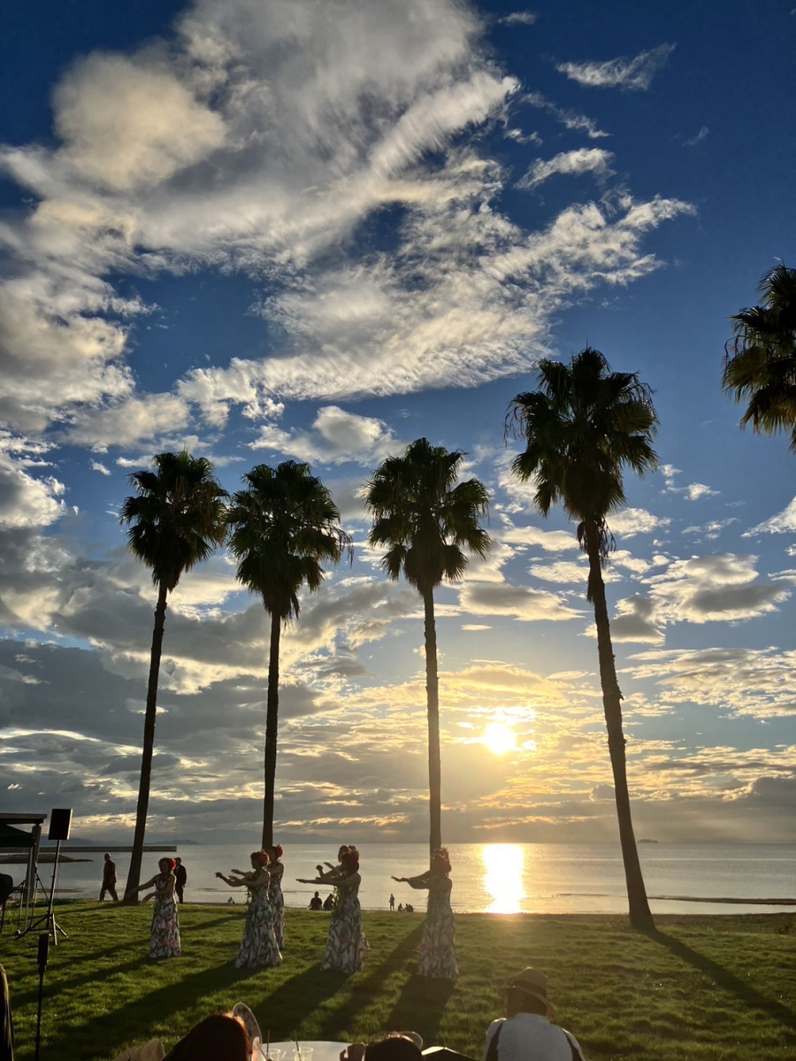 ヤシの木が並ぶ海岸線と広大な芝生広場の公園で、ハワイアンライブ!