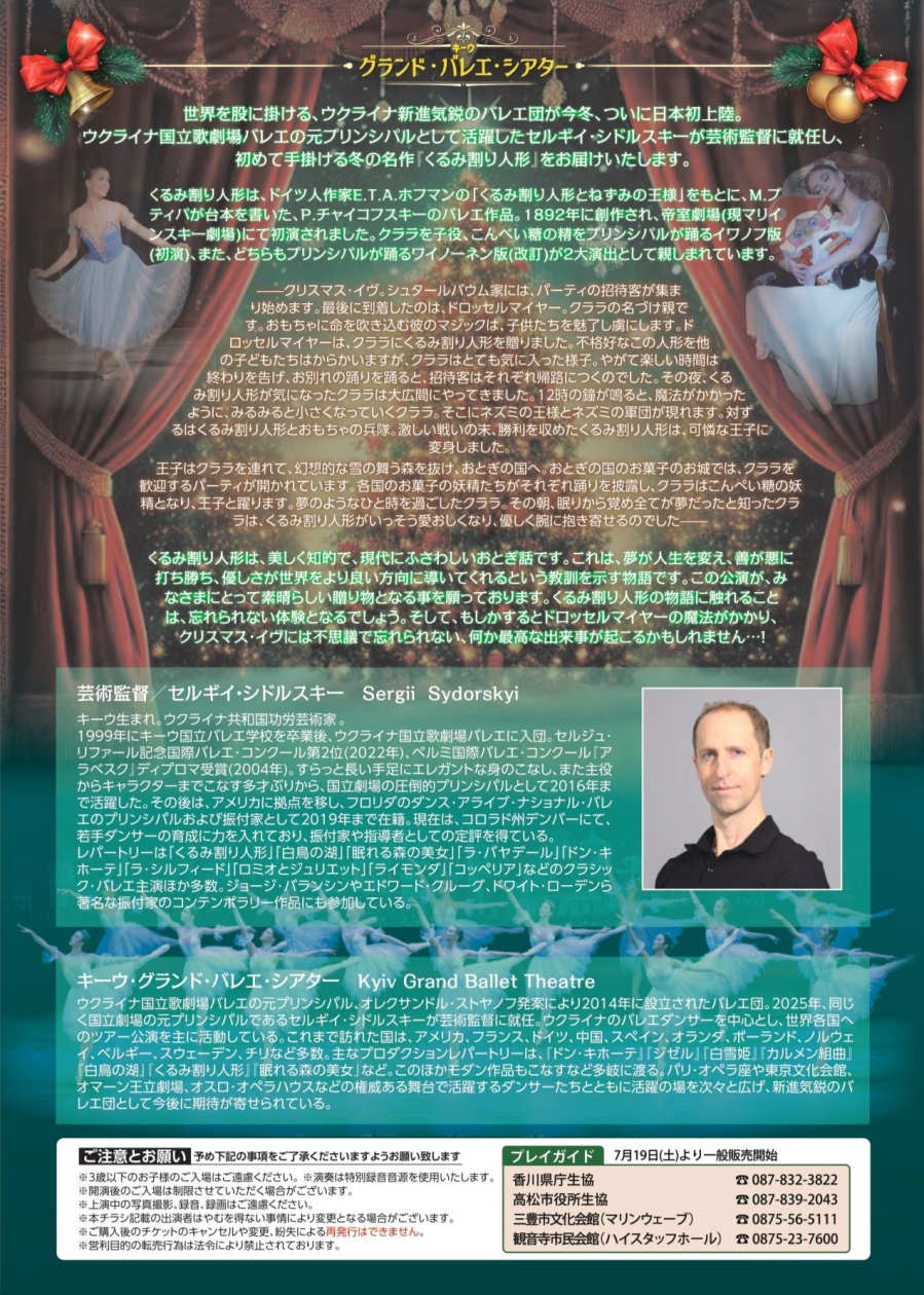 ウクライナ国立歌劇場バレエの元プリンシパルとして活躍したセルギイ・シドルスキーが手掛ける冬の名作『くるみ割り人形』をお届けします。