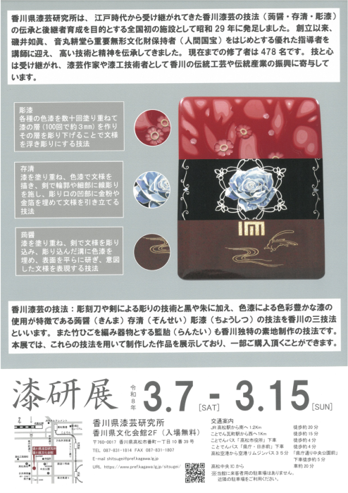 これからの香川漆芸を担う研究生と研究員の1年間の成果を発表する場として、「漆研展」を開催します!