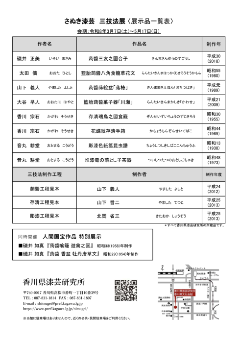 | 開催場所 | 香川県文化会館1階 香川漆芸ホール |